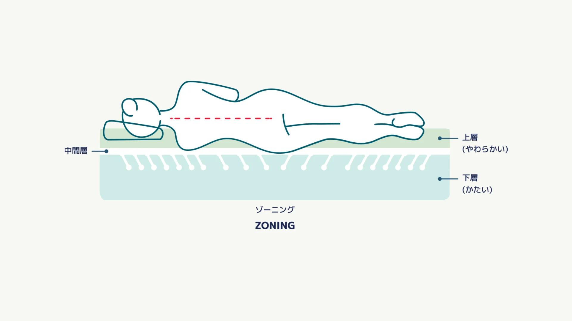 - ゾーニング製法で、肩や腰当たりの硬さを調整
